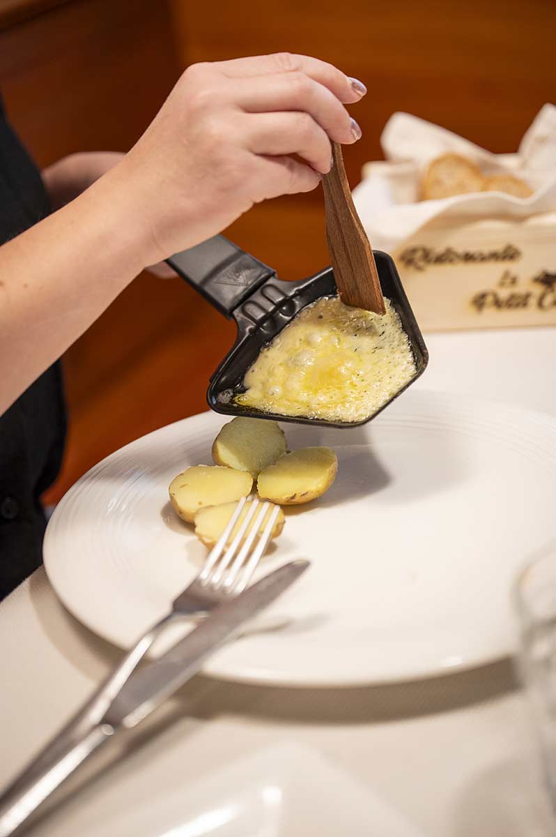 Pietanza a base di formaggio, salumi e patate, tipicamente montanara, con il carattere conviviale della fondue. (prezzo per persona / per bambini fino a 8 anni 12€)